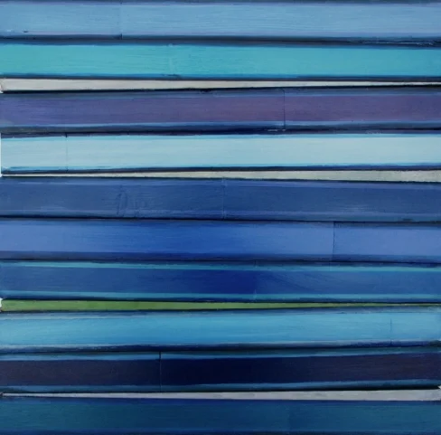 Architectural model building and common construction materials provide the inspiration and starting point for my relief paintings. Creating a composition using wood shingles and shims, I build an undulating, topographic surface that evokes a landscape element or elements. The addition of subsequent layers of color connects each piece to a specific emotion, time, and place. The use of fine oil paint makes the connection back to artistic tradition.
